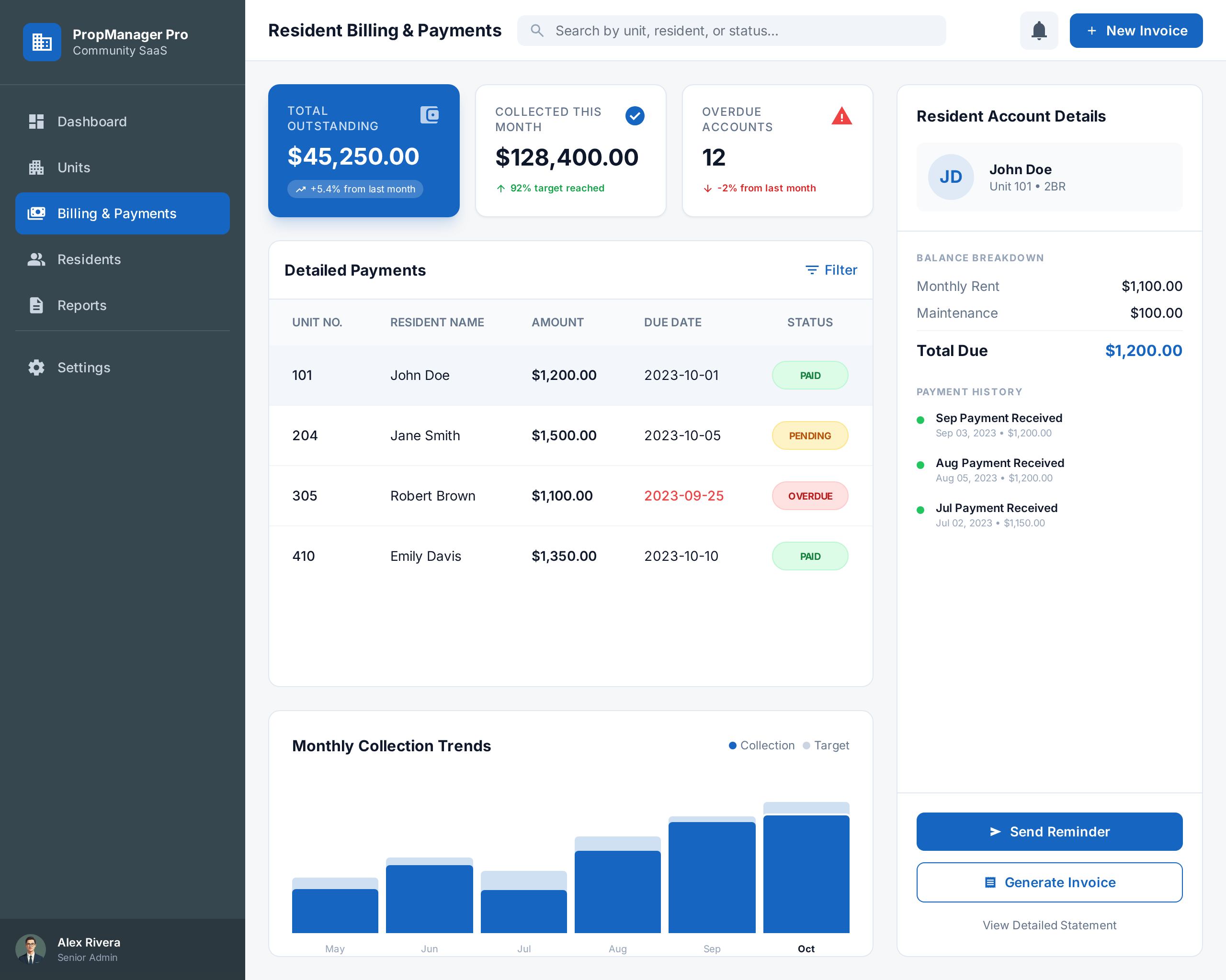 - Provide property managers with tools to manage billing, coordinate maintenance, publish announcements, and organize community events without manual tracking.