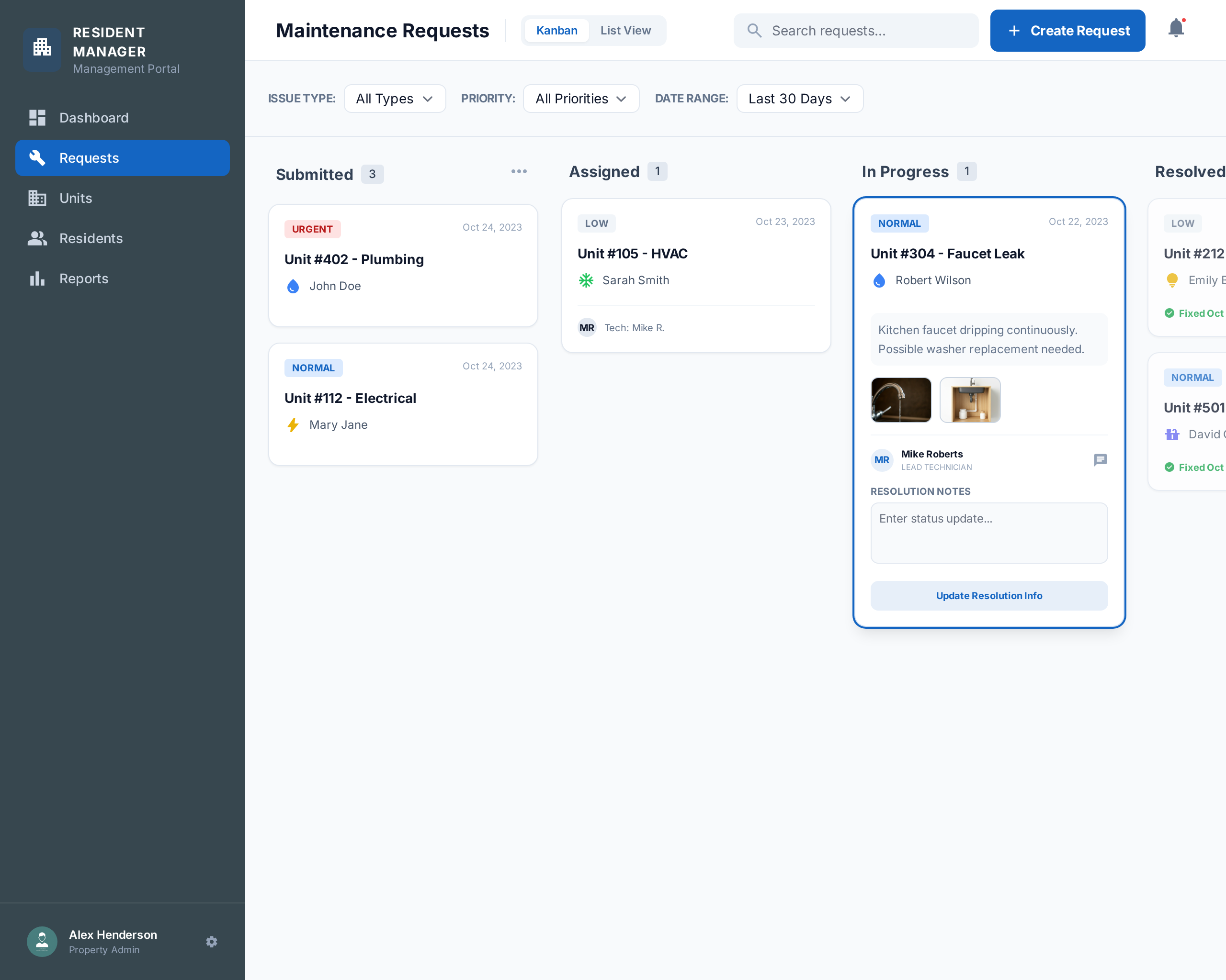 - Give residents a single platform to view bills, report issues, track maintenance requests, and stay informed about community updates — replacing scattered communication with structured, transparent workflows.